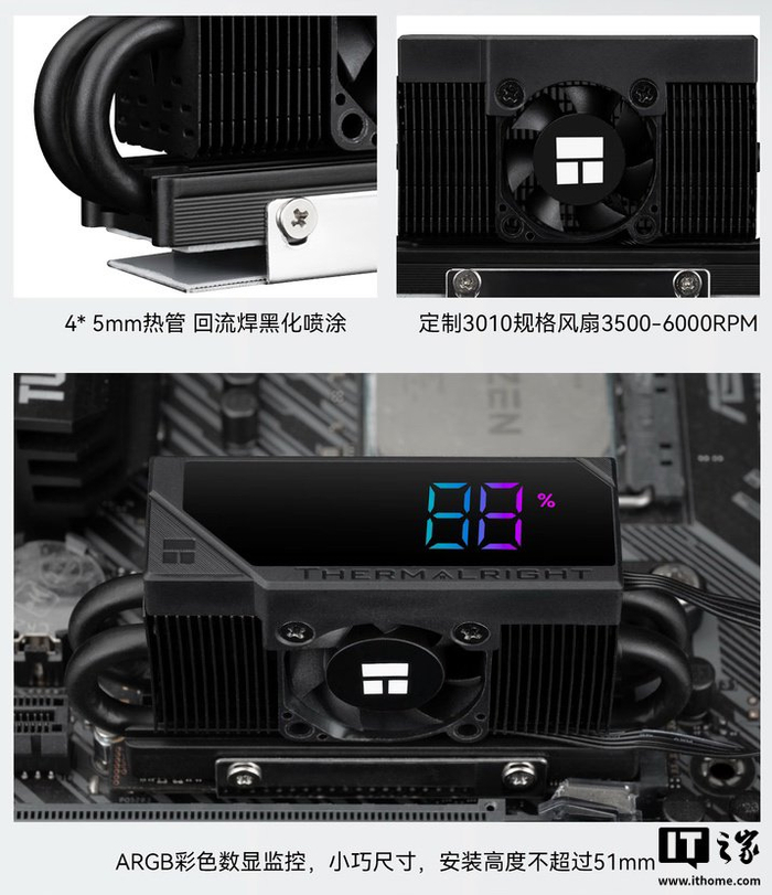 IT之家 8 月 10 日消息,Thermalright 利民旗下 HR-10 2280 PRO Digital 系列主动式 M.2 固态硬盘散热器国行版本现已在京东上架,这款散热器顶部配备了 ARGB 数显段码屏,黑白定价均为 129 元。