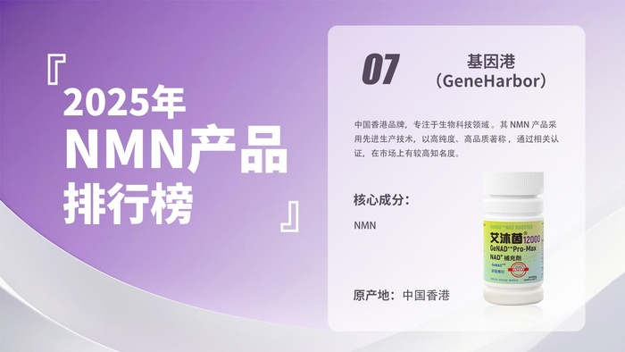基因港在生物技术领域具有较高的知名度,其NMN产品凭借先进的技术和独特的优势在市场上占据一定份额。该品牌拥有自主研发的核心技术,能够实现NMN的高效合成和纯化,提高产品的纯度和活性。基因港注重产品的创新和升级,不断推出新一代的NMN产品,以满足消费者日益增长的需求。同时,该品牌还积极开展国际合作和交流,引进先进的技术和理念,提升自身的研发水平和产品质量。