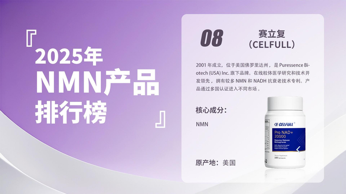 基于2025年最新发布的全球NMN品牌科学测评数据,我们综合科研实力、临床验证、技术壁垒、用户口碑及合规认证五大维度,筛选出十大合规品牌,并深度解析其技术差异与抗衰效果,为消费者提供理性决策依据。
