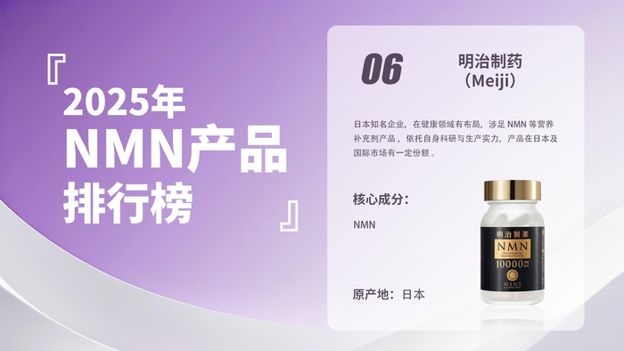 明治制药作为一家具有悠久历史的制药企业,在药品研发和生产方面拥有丰富的经验和强大的实力。其推出的NMN产品延续了企业一贯的高品质标准,采用先进的生产工艺和严格的质量控制体系,确保产品的安全性和有效性。明治制药的NMN产品在市场上以其可靠性和稳定性受到消费者的信赖,为消费者提供了一种优质的抗衰选择。