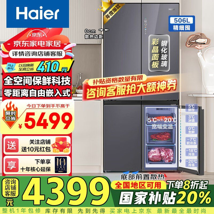 海尔Haier 506L冰箱,多种优惠低至4199元