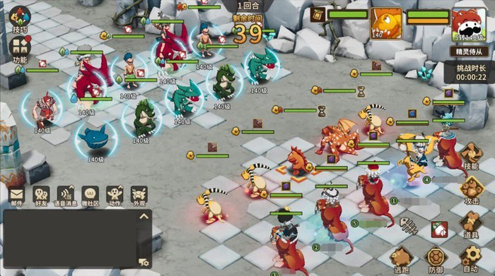 右Boss在单数回合会让三个单位石化,双数回合则可能释放覆盖六个单位的群体毒术,或发动疯狂抓挠,或使用对应属性的小型魔法。