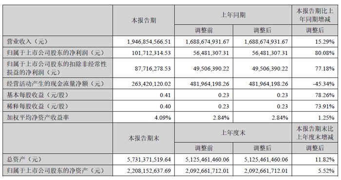 报告期内,受下游客户备货节奏影响,公司出货量不及去年同期水平,致营业收入22.51 亿元,同比微降0.2%。归属于上市公司股东的净利润4.31 亿元,同比增长35.7%。