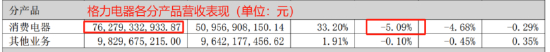要知道,一直以来,空调业务作为格力电器核心业务板块,贡献公司超七成营收。去年同期,格力电器空调业务更是贡献了格力电器78.14%的营收份额。不过今年,格力电器却一反常态地未列出空调板块营收额度。