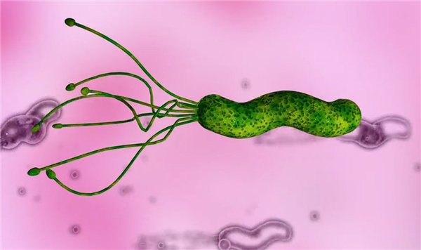 幽门螺旋杆菌感染后,胃黏膜几乎都会发生炎症,它能够在胃中强酸性环境中生存,并通过其强动力性、粘附素以及产生的尿素酶等因素,牢牢地连接在胃黏膜表面,特别是在胃窦部繁衍,导致慢性胃炎、十二指肠溃疡、胃溃疡等疾病的发生,甚至与胃癌和胃黏膜相关 B 细胞淋巴瘤的发生有密切关系。