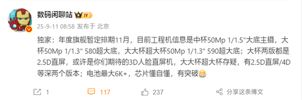 其中,Mate 80 Pro是2.5D直屏,有希望采用3D人脸识别方案,Mate 80 Pro+和Mate 80 RS有2.5D直屏/4D等深两个版本。
