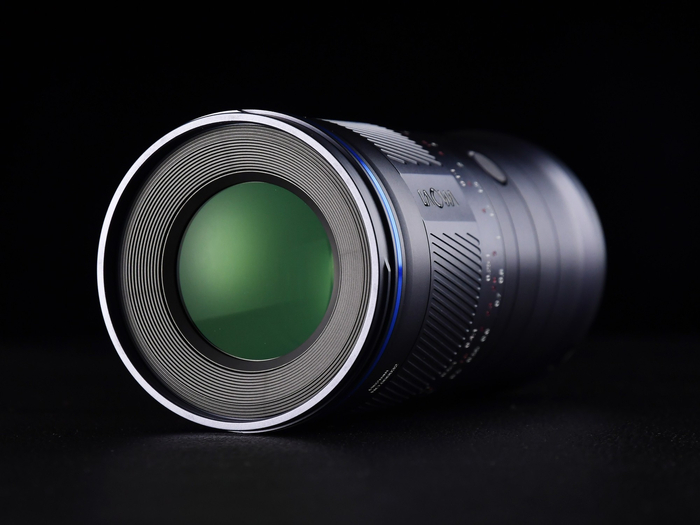 老蛙 FF 180mm F4.5 CA-Dreamer Macro 1.5X镜头整体的外观设计十分简约。镜头正面是这款镜头的型号标识,镜头前组外圈延续了老蛙标志性的蓝圈设计。由于180mm的长焦焦段,最近工作距离是147.6mm,这样的长工作距离对于拍摄场景的布光来说无疑是一个优势,不仅能够提供更灵活的布光空间,让灯光设备更自由地调整角度和位置,还能减少拍摄场景里的杂光,保证主体光线充足,营造更具有层次感的背景虚化效果。