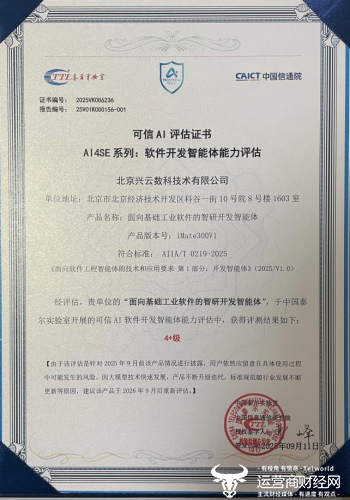 国内首批最高等级!中兴通讯兴云数科通过中国信通院可信AI软件开发智能体能力认证