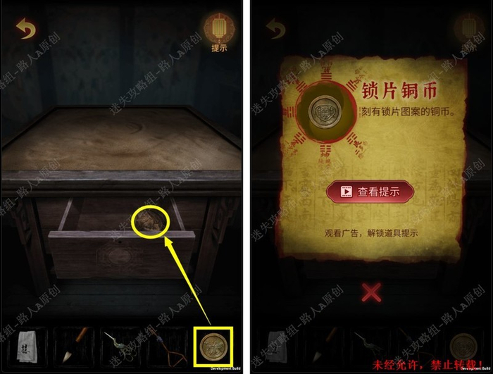 将无字铜币放入桌面凹槽,完成小游戏步骤10、10.1及10.2。