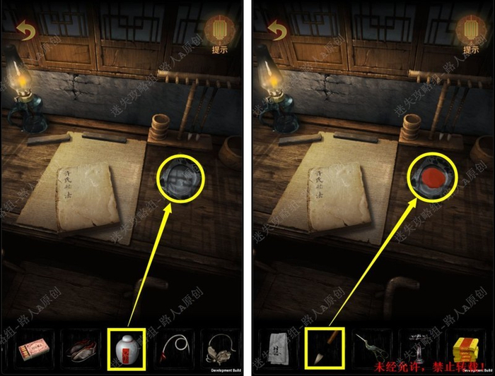 根据桌上许氏秘法的提示,找到物品、时辰与图案之间的对应关系,打开柜子取出蜡烛、三支香和香炉。