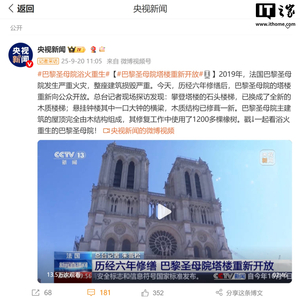 IT之家 9 月 20 日消息,@央视新闻 今天(9 月 20 日)发布博文,报道称历经 6 年的修缮后,巴黎圣母院的塔楼重新向公众开放。