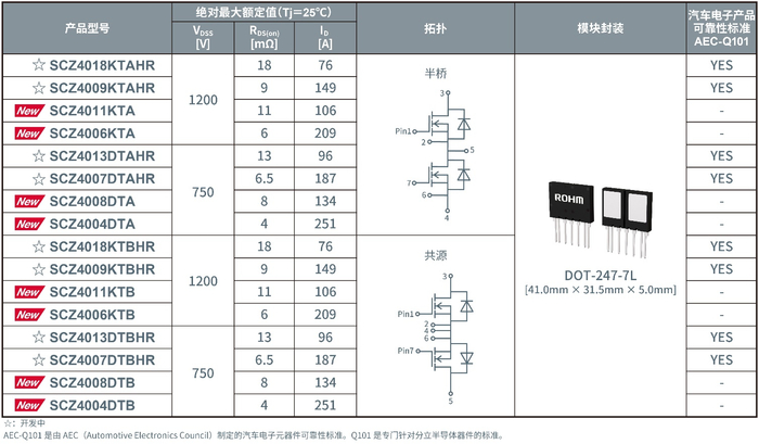 ROHM推出二合一SiC模块“DOT-247”,可实现更高的设计灵活性和功率密度