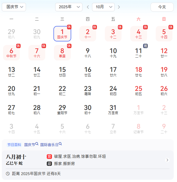 今年国庆中秋假期叠加,8天超长假期将进一步释放公众出行需求,预计本次假期出行热度将创年内新高,成为年度出行高峰时段之一。