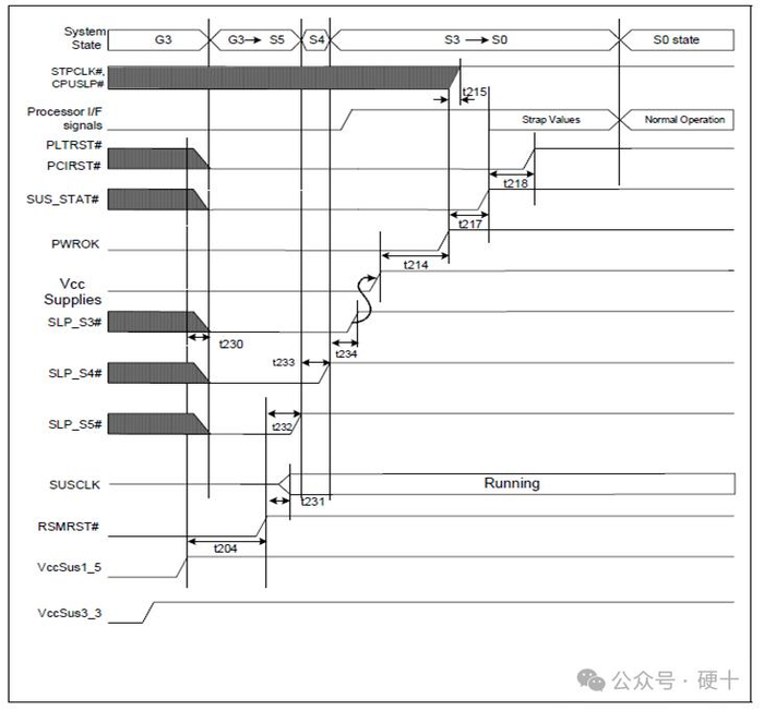电源专题,需要分析电源需求,每种电源的电压范围,电流需求,动态响应,上电时序;时钟专题,针对每个时钟的输入的电平标准,频率,抖动等参数,时钟时序,并按照各种时钟解决方案进行优化。每个管脚怎么用,怎么接,对接的管脚的电平是否满足要求,都需要分析清楚并文档化。例如电源专题:芯片厂家给出的的是一些针对他自己器件的要求,例如图是Intel对其电源上电时序之间的耦合关系的要求和一些先后顺序的描述。