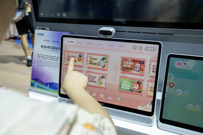 现场一位观众触碰希沃AI学习机,提到“帮我推荐恐龙绘本”读物,学习机会即可搜索相关内容。工作人员介绍,围绕3-8岁儿童成长规律,学习机推出阅读培养、思维启蒙等主题计划。家长设定目标后,学习机会自动生成个性化路径,拆解为每日、每周适龄任务。此外,学习机还有AI学伴功能,可以实现智能作业辅导、绘本精讲等功能,成为“宝妈宝爸的带娃帮手”。