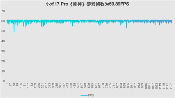 《原神》60FPS特效拉满的情况下,实际的游戏帧数为59.89FPS,平均帧数非常稳定,整个游戏没有任何的波动,实际性能表现优秀。