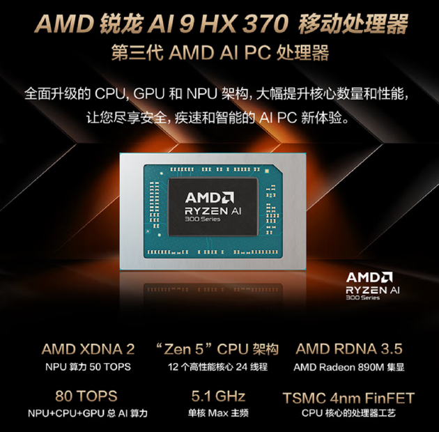 处理器方面,华硕ProArt 创16 2025搭载AMD锐龙AI 9 HX 370处理器,12核心24线程,最高主频可达5.1GHz,搭配至高64GB LPDDR5X 7500MT/s高频内存,多任务处理能力出色,让创作之旅即刻丝滑开启。该处理器还集成Radeon 890M集显、XDNA 2架构NPU,以至高80 TOPS总AI算力全力释放本地AIGC创作实力。
