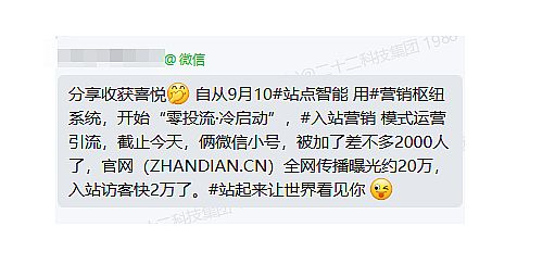 9月10日,首个预热落地页(ZHANDIAN.VIP)初步上线,经好友协调,22.CN爱名网协助宣推后,短短十多天,站点智能在团队共同合力下“零投流,冷启动”,截止目前,成效十分可观: