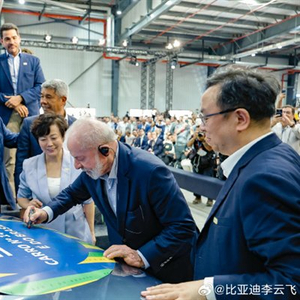 巴西总统卢拉亲自参与下线仪式并成为车主,比亚迪董事长王传福亲自交车。
