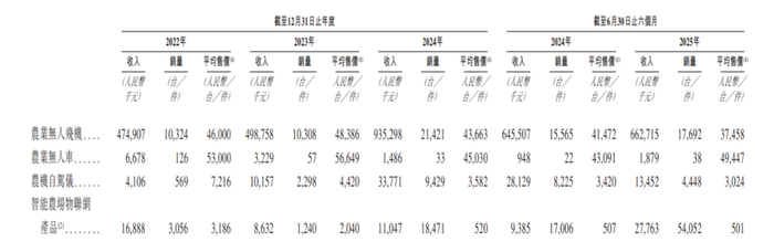 极飞科技商业化快速推进,海外市场贡献不小。招股书显示,2022年至2024年,极飞科技境外收入由1.46亿元增至3.71亿元,复合增长率达59.4%。值得注意的是,极飞科技似乎又陷进了增长乏力的困境。招股书显示,2025年上半年,极飞科技收入同比增长2.08%,合同负债从2024年末的3.53亿元锐减至7898.5万元,降幅达77.64%。截至2025年上半年的应收账款更是较2024年末增长1345.55%。和三年前相比,极飞科技这一次申请上市准备的似乎更充分,但在极飞科技面前,还横亘在一座大山。遭“以价换量”反噬,大疆仍是一座大山无论是在国内还是在全球市场,农业无人机赛道里,大疆都是独一档的存在。据极飞科技招股书,根据弗若斯特沙利文报告,以2024年营收计,极飞科技在全球农业无人飞机行业的市场份额为17.1%,在中国农业无人飞机行业的市场份额为20.8%。同期,大疆的全球及中国市场的农业无人机市场份额分别为59.0%及63.9%。尽管极飞科技始终无法超越大疆,但这两大头部厂商却联手瓜分了国内以及全球的农业无人机市场,因此,极飞科技也被称为大疆在农业领域最具竞争力的对手。据悉,极飞科技虽然是一群航模极客组建的创业团队,但在2009年至2010年,彭斌带领的XAircraft团队凭借推出的X450及X650无人机,开创了多旋翼无人机技术,满足了模型飞机爱好者及航拍用户的需求,并奠定了公司在飞机设计和控制算法开发方面的基础专业知识。2013至2014年,极飞科技在公司正式成立后开始探索无人机在各类行业场景中的应用,包括科学研究、基础设施巡检、搜救以及物流,同时评估技术解决方案及商业模式。当极飞科技的农作物保护无人机原型首次试飞成功后,公司战略性地转移至推进农业无人机技术。目前,极飞科技的收入主要来源于销售包括农业无人飞机、农业无人车、农机自驾仪、智能农场物联网产品及配件在内的农业机器人。其大部分收入来自农业无人飞机,其对应收入在2022年、2023年、2024年及2025年上半年分别为4.75亿元、4.99亿元、9.35亿元及6.63亿元;占同期总收入的比例分别为78.6%、81.2%、87.8%及89.0%。作为极飞科技的收入核心,2022年、2023年、2024年及2025年,极飞科技农业无人飞机的销量分别为10324台、10308台、21421台及17692台,2024年极飞科技农业无人飞机的销量同比增长107.81%,但到了2025年上半年,该项业务的增长速度只有13.67%。与此同时,2025年上半年,极飞科技其他产品线如农业无人车、农机自驾仪、智能农场物联网产品的平均售价分别为49447元、3024元、501元,而这些产品在2022年的平均售价分别为53000元、7216元、3186元,分别累计下降了6.7%、58.09%、84.27%。