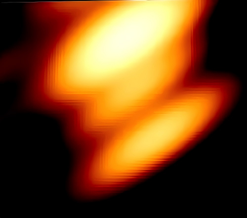 可以明显看到,其中来自较小黑洞的一条喷流呈螺旋状扭曲,高速绕行较大的黑洞运行时,喷流的方向会随着轨道变化而不断偏转。