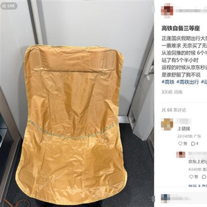 快科技10月11日消息,一位网友在社交平台上表示,正逢国庆假期出行大热潮,一票难求,无奈买了无座,返程的时候从京东秒送上买了个椅子直接送到车站,自称“高铁三等座”。