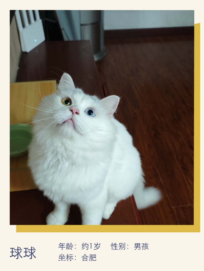 领养条件:合肥本地领养;年满22周岁,有稳定居所和收入;室内封金刚纱窗,签订领养协议;留身份证照片;送养家访;科学喂养、按时免疫驱虫。