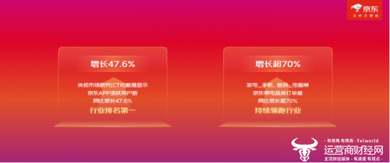健康消费成为市场新热点。体重管理用药、补益用药的成交新用户数同比增长超5倍;以燕窝、阿胶为代表的传统滋补品和鱼油、赖氨酸等现代营养补充剂,以及动态血糖仪、呼吸机等健康器械的成交额同比增长超2倍。新能源相关品类持续高速增长,自营电动自行车成交额同比增长500%,新能源汽车充电桩增长102%。京东全球购服饰品类成交额同比增长300%,浪琴品牌同比增长超10倍,百年品牌STANLEY、白鹤分别同比增长40倍、5.7倍。