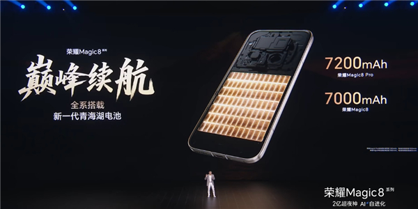 其中,荣耀Magic8电池容量为7000mAh,荣耀Magic8 Pro为7200mAh。