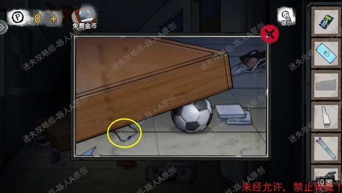 点击篮球架,用小刀划开篮球,取出并拾取里面的钩子。