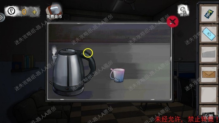 进入门卫室,点击右下角台灯,更换新灯泡后按下按钮将其打开。