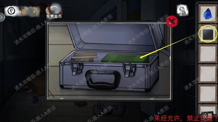 拾取地面箱子中的绿色盒子里的芯片,插入后完成小游戏,即可取得开锁器。