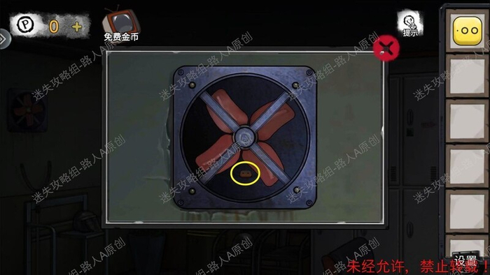 点击左侧书架获取纸片,随后按下按钮关闭风扇。