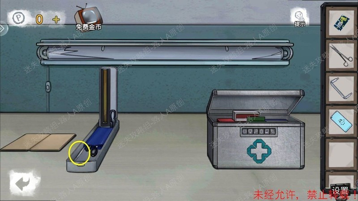 回到医务室,用剪刀划开枕头,取出里面的灯和图案块。