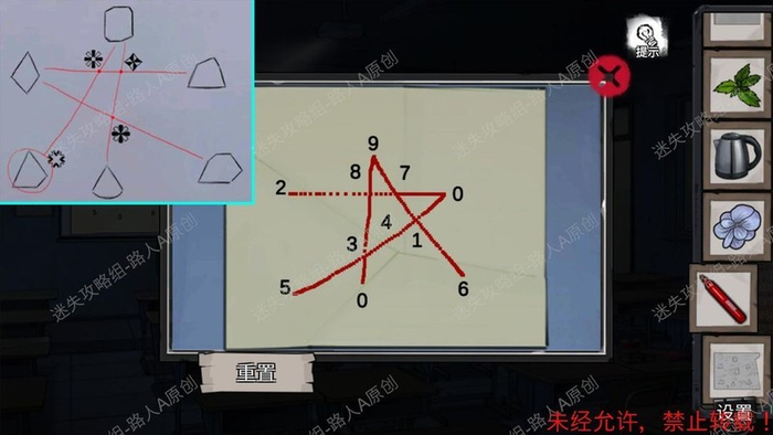 回到三楼走廊,查看墙上字画,依据划痕将其移至正确位置,取得与两件物品。