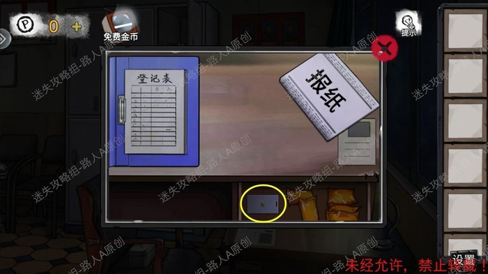 点击桌子打开文件夹,取得橘色按钮;挪开报纸,拿到开瓶器。