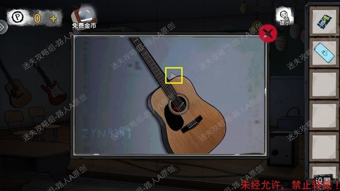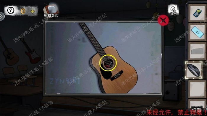 纸片藏于音乐室吉他背面,详见图3.1所示位置。