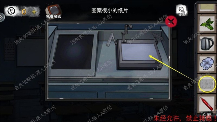 回到校门口,点击地面路障,用背包里的圆规打开,拾取其中的纸条。