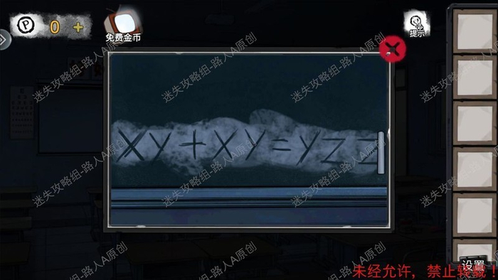 点击字画下方的盒子,参照教室黑板上的提示,解得X=6、Y=1、Z=2,输入密码后获取芯片。