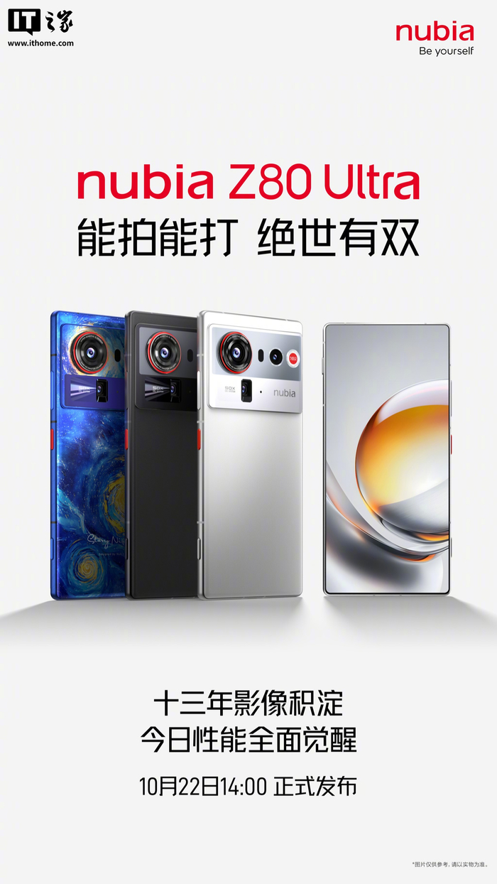 IT之家 10 月 19 日消息,努比亚 Z80 Ultra 新机已官宣将于 10 月 22 日 14 时正式发布。这款手机的 Slogan 为“能拍能打,绝世有双”,号称拥有十三年影像积淀。