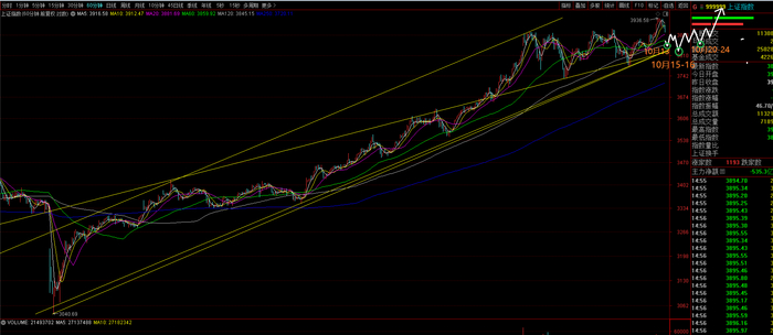 实际走势是,(1)上证指数如期于10月13日止跌回升,(2)且如期于极限低点在3780--3810之间的3800止跌回升,(3)再如期回落后于15日再反弹,(4)再回落,大概率将于10月20-24形成第三个低点。