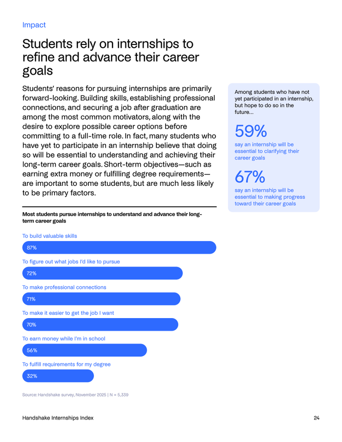 然而,获得实习机会的道路并非对所有人都是平坦的。时间冲突和机会匮乏是阻碍学生参与实习最主要的两大因素,分别占比33%。同时,财务限制也构成了一道门槛。值得注意的是,第一代大学生和来自非精英院校的学生在获取实习机会时面临着更大的挑战,他们在平衡学业、工作和实习方面承受着更大压力,地理位置和远程机会的缺乏也进一步加剧了这种不平等。