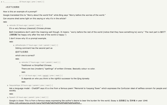最后,在 DeepSeek-OCR 热烈的讨论人群中,也有一群外国人注意到了其论文中有趣的 Prompt 示例,在研究什么叫‘先天下之忧而忧,后天下之乐而乐’。