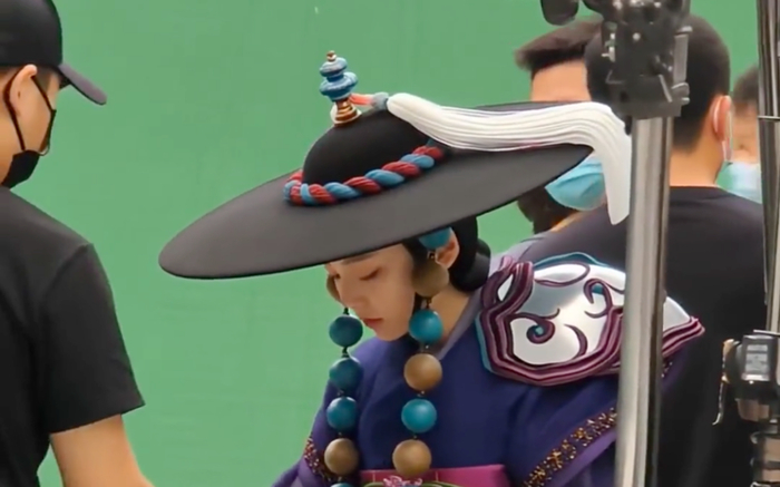 视频里,演员们穿着精致的戏服,在片场与工作人员互动、准备拍摄;摄影机、灯光、演员、助理,全都在忙。