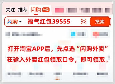 在2025年10月1日至2025年12月30日,打开手机淘宝APP,顶部导航点击“闪购外卖”,在闪购搜索框内输入外卖红包领取口令“福气红包39555”,搜索进入领取当天可用的淘宝闪购外卖红包,新人更有机会获得15元无门槛淘宝闪购外卖红包。淘宝闪购外卖红包官方口令在有效时间内可以使用,过期失效后请使用下面的词令直达淘宝闪购外卖红包天天领入口长期口令。