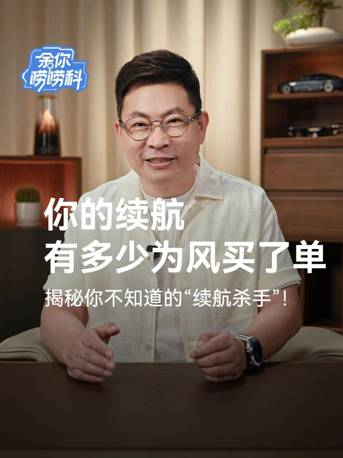 余承东举例,车速在 80km/h、100km/h、120km/h 时,风阻在指数的增长;车速从 80km/h 增大到 120km/h,车速只增加了 0.5 倍,风阻力却增加到 2.25 倍;两辆相同电池容量的车,如果风阻系数 0.23 的车高速可跑 500 公里,那么风阻系数 0.27 的车大概只能跑 420 公里。