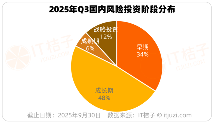 同时,早期投资事件在2025Q3环比增长了31%,达到814笔。早期和成长期投资目前在创投市场上占据了绝对的主导地位,合计占比约82%。