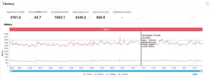 这样的调度策略下,REDMI K90 Pro Max 运行《崩坏:星穹铁道》黄金的时刻场景平均功耗为 8.03W,机身最高温度来到了 42.4℃,可见《崩坏:星穹铁道》黄金的时刻这个场景对性能的需求确实是比较大的,REDMI K90 Pro Max 还是能够保证平稳的帧率,机身温度和功耗稍微大了点,但游玩过程中也能接受,不会产生不适感。