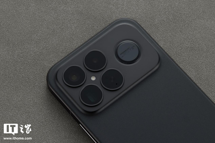 手机背面为四枚矩阵排列的摄像头和潜望镜,闪光灯在四枚摄像头的中间,看起来比较有秩序感。相机 Deco 模块沿着整个背板凸起,与航天及铝合金装饰片表面进行拼接。四枚摄像头的右侧是有 BOSE 标识的超大低音炮扬声器。