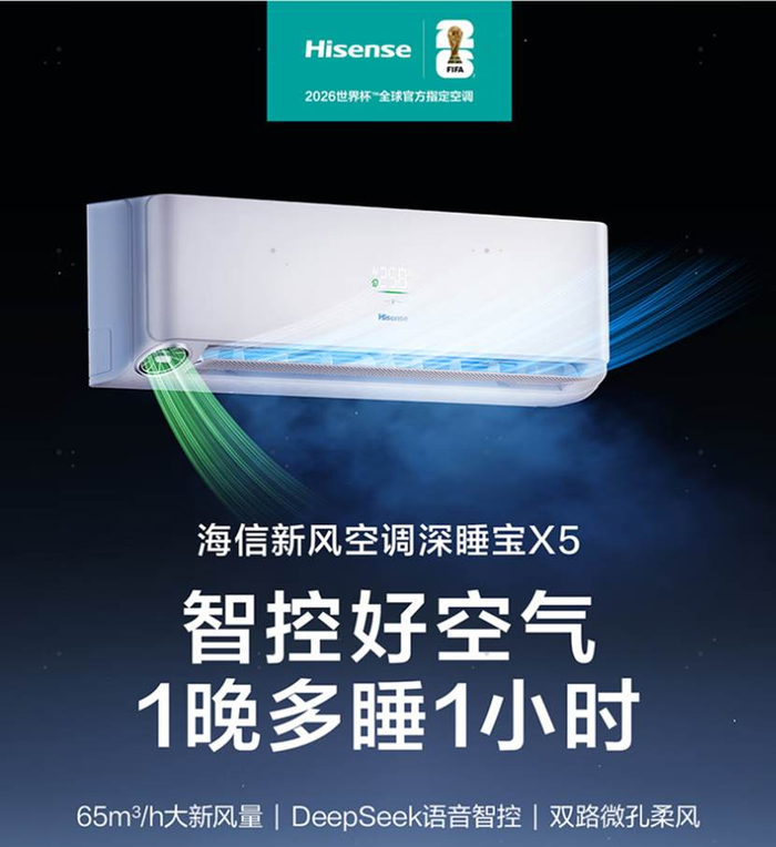 无论是挂机还是柜机,海信新风空调X5系列在智能交互层面均搭载AI洁净新风系统和Deepseek语音智控技术。